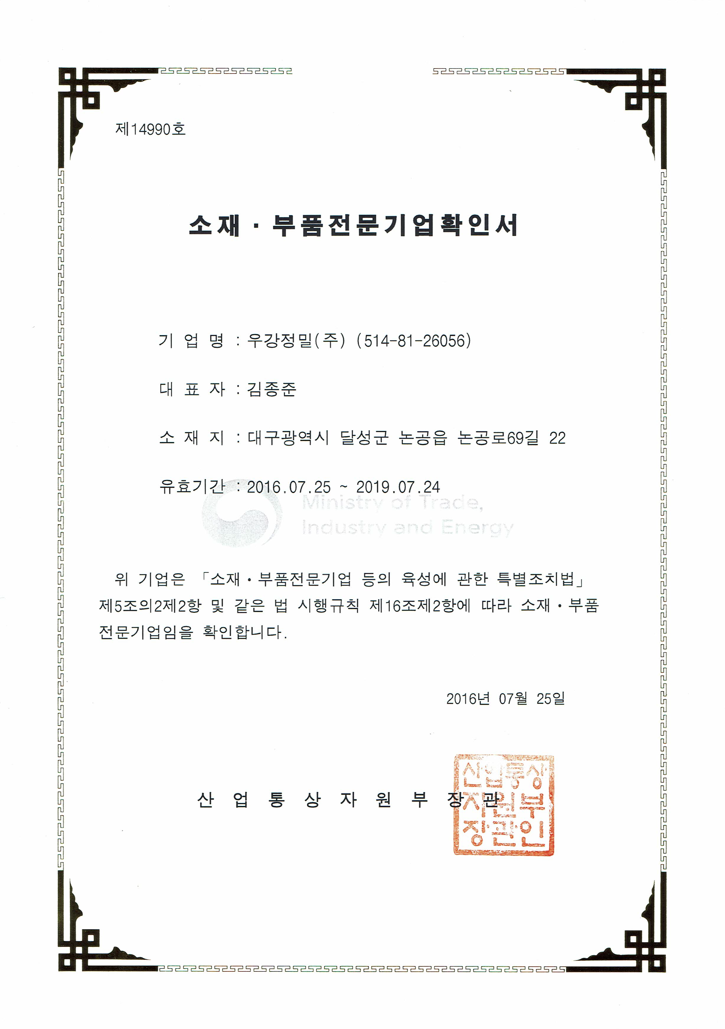 소재 부품 전문기업 확인서